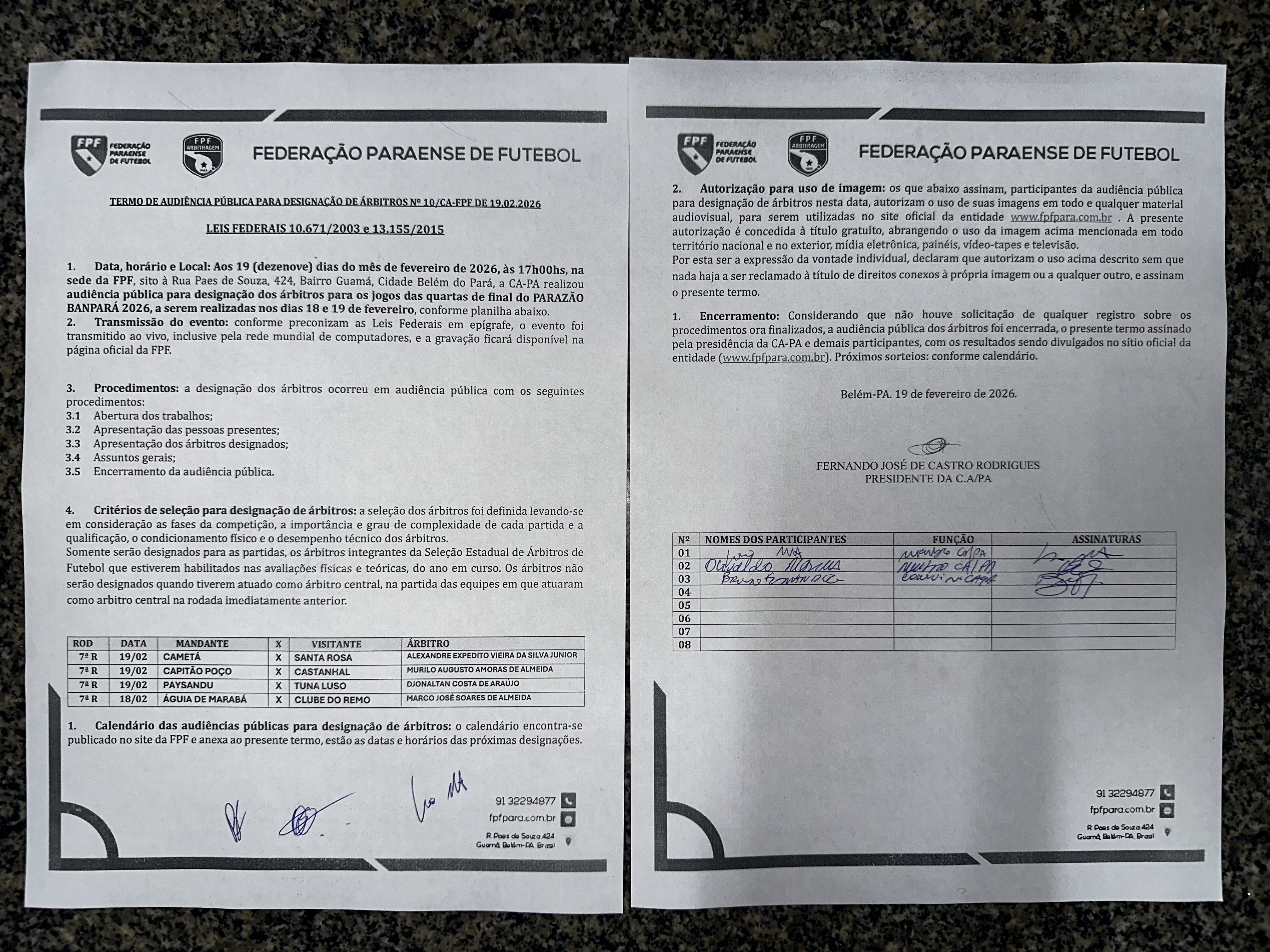 A Comissão de Arbitragem da Federação Paraense de Futebol, designou na tarde desta sengunda-feira (16/02), os árbitros para as Quarts de Final do Parazão Banpará 2026, conforme planilha a seguir: